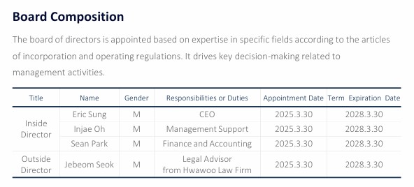 Intellian adheres to internal and external rules and regulations, operating its board of directors accordingly. The board is dedicated to making responsible and ethical decisions, ensuring the protection of the interests of small shareholders as the company grows.