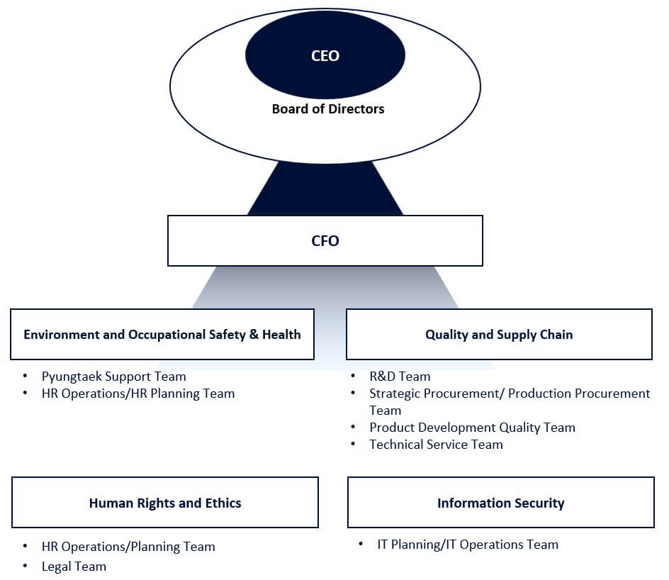 Intellian oversees the management and monitoring of ESG-related risks and performance at the Board of Directors. Under the CFO, key departments communicate and internalize strategic objectives. The department report their objectives, plans, and achievements to the Board annually.