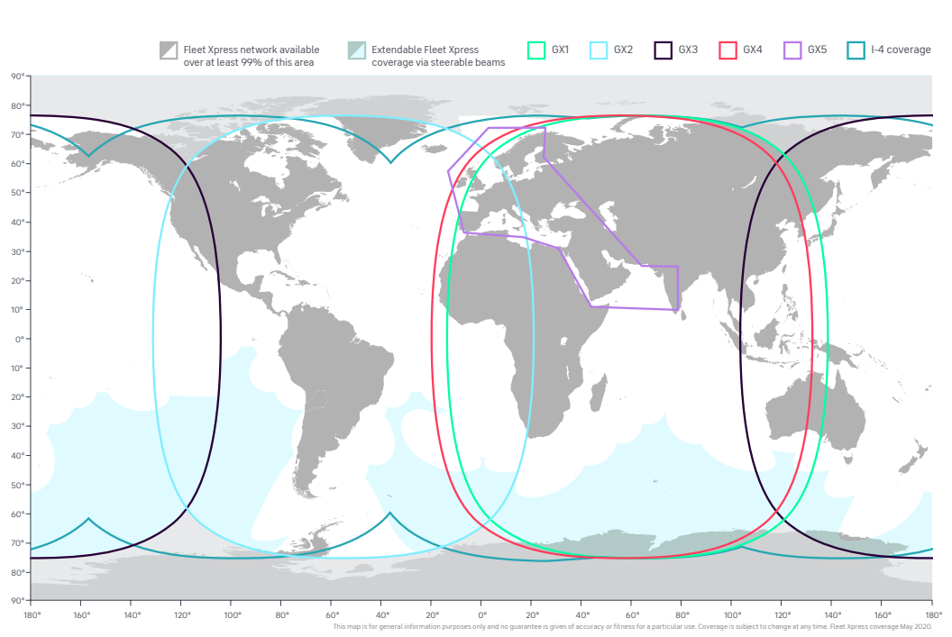 Global Xpress (GX), operating in the Ka-band, is the first high-speed mobile broadband network to seamlessly span the world. Inmarsat’s market-leading service delivers the high bandwidth and reliability that customers demand.